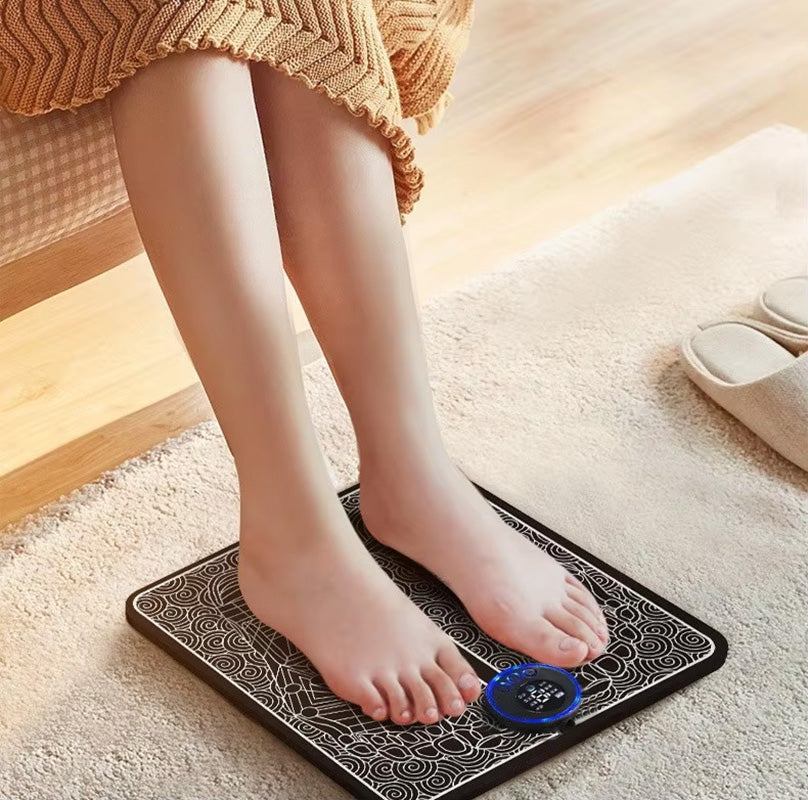 Matten stimulerer nervene i føttene ved hjelp av spesialdesignede impulser som forbedrer blodsirkulasjon og reduserer smerte.